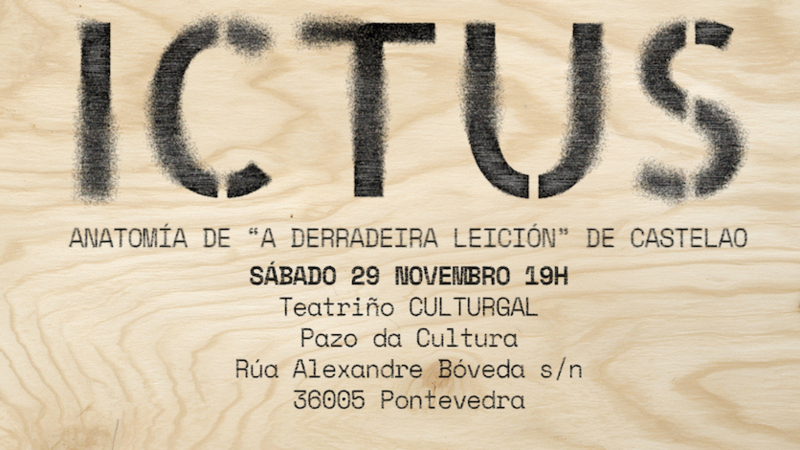 O sábado 29 de novembro ás 19h faremos un acto de presentación do novo proxecto escénico de Chévere para 2026, titulado ICTUS (anatomía de 'A derradeira leición' de Castelao)